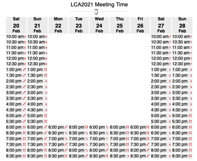 - Red dots and numbers indicate the number of people at a given time who said they could not attend.